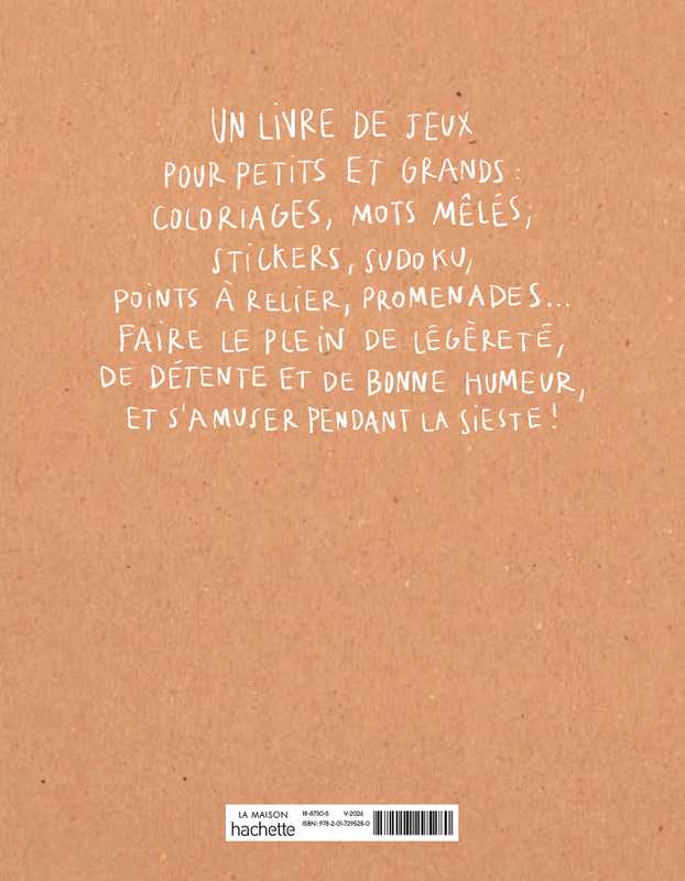 Un livre de jeux pour petits et grands : coloriages, mots mêlés, stickers, sudoku, points à relier, promenades… Faire le plein de légèreté, de détente et de bonne humeur, et s’amuser pendant la sieste !