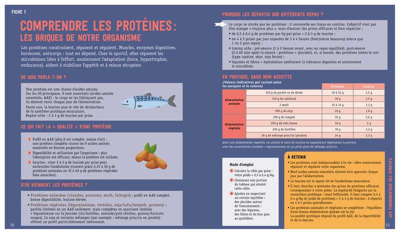- Des fiches techniques pratiques, rédigées par une diététicienne-nutritionniste, qui vous donneront les clefs pour maîtriser votre alimentation, au quotidien comme avant une séance de sport ou une compétition.
