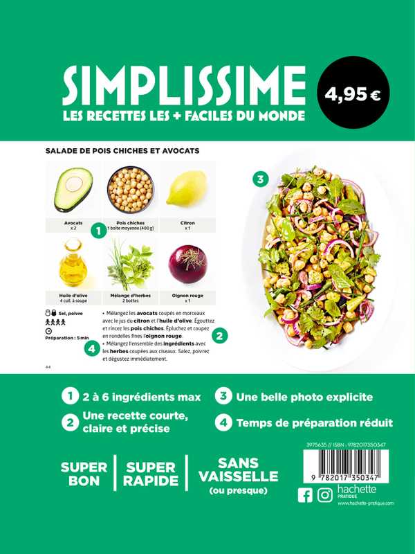 2 à 6 ingrédients maxUne recette courte, claire et préciseUne belle photo expliciteTemps de préparation réduit SUPER BON, SUPER RAPIDE, SANS VAISSELLE (ou presque)
