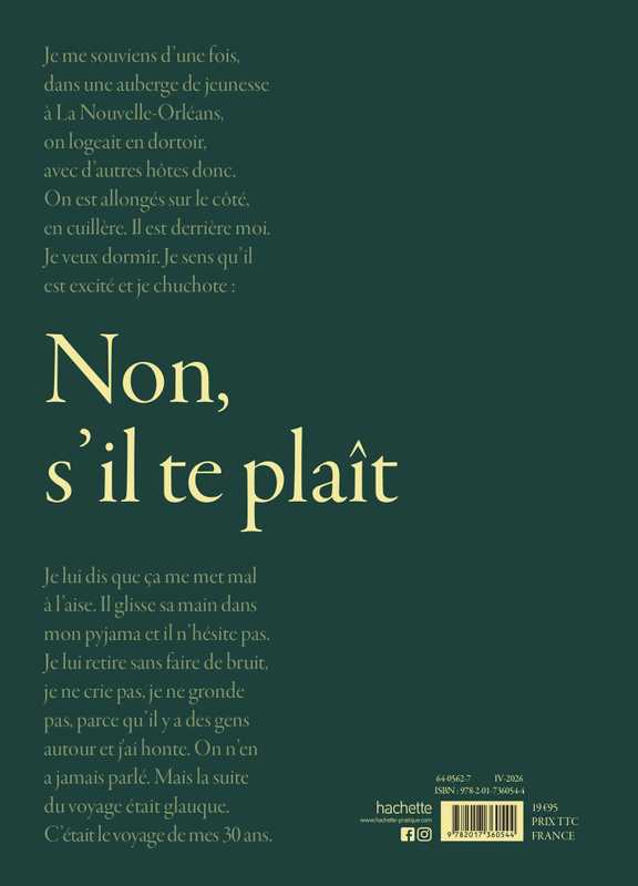 Je lui dis que ça me met mal à l'aise. Il glisse sa main dans mon pyjama et il n'hésite pas. Je lui retire sans faire de bruit, je ne crie pas, je ne gronde pas, parce qu'il y a des gens autour et j'ai honte. On n'en a jamais parlé. Mais la suite du voyage était glauque.