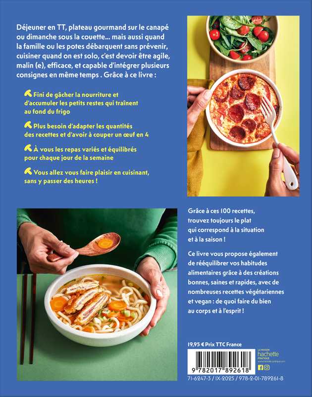 Déjeuner en TT, plateau gourmand sur le canapé ou dimanche sous la couette... mais aussi quand la famille ou les potes débarquent sans prévenir, cuisiner quand on est solo, c'est devoir être agile, malin(e), efficace, et capable d'intégrer plusieurs consignes en même temps. Grâce à ce livre :
