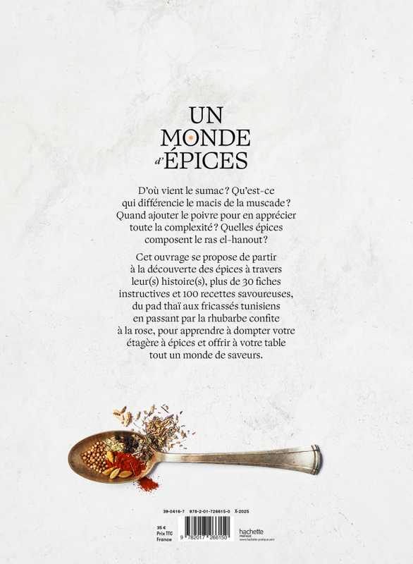 Cet ouvrage se propose de partir à la découverte des épices à travers leur(s) histoire(s), plus de 30 fiches instructives et 100 recettes savoureuses, du pad thaï aux fricassés tunisiens en passant par la rubarbe confite à la rose, pour apprendre à dompter votre étagère à épices et offrir à votre table tout un monde de saveurs.